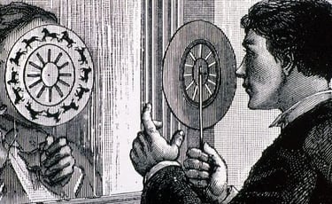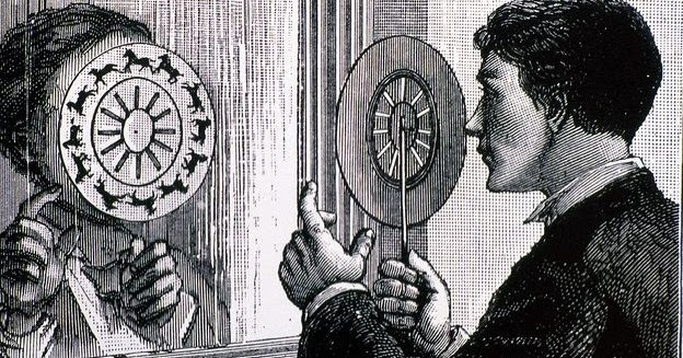 Thaumatrope (1825): um disco com duas imagens que se misturam quando você gira.